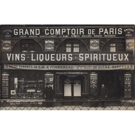 • TOURS - GRAND COMPTOIR DE PARIS - VINS, LIQUEURS, SPIRITUEUX -  SUPERBE CARTE PHOTO - DEVANTURE DE MAGASIN - ANIMATION - RARE.