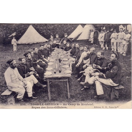 • LONS LE SAUNIER - AU CAMP DE MONTCIEL - REPAS DES SOUS OFFICIERS - CARTE DATEE DE 1906.