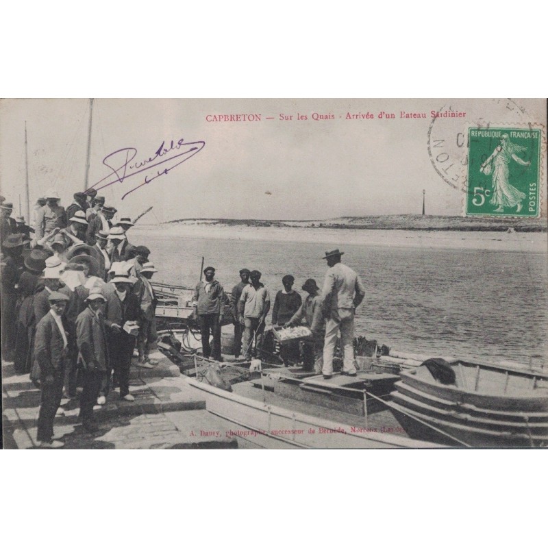 • CAPBRETON - SUR LES QUAIS - ARRIVEE D'UN BATEAU SARDINIER - CARTE DATEE DE 1913.