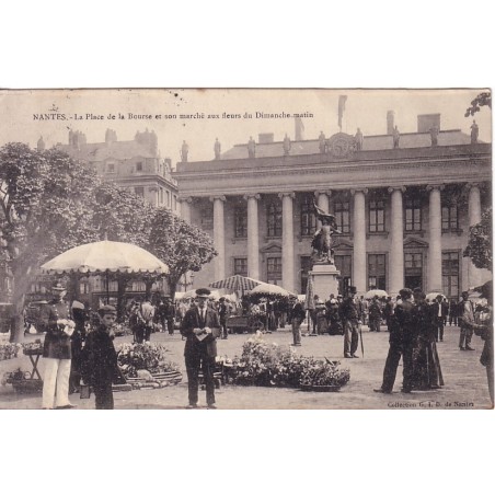 NANTES - LA PLACE DE LA BOURSE ET SON MARCHE AUX FLEURS DU DIMANCHE MATIN - ANIMATION - CARTE DATEE DE 1905.
