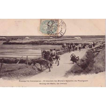• LE POULINGUEN - A TRAVERS LES MARAIS SALANTS - BOURG DE BATZ - LE CROISIC - CARTE DATEE DE 1910.