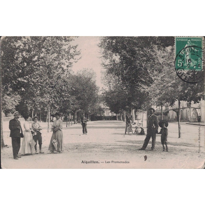 AIGUILLON - LES PROMENADES - ANIMATION - CARTE DATEE DE 1908.