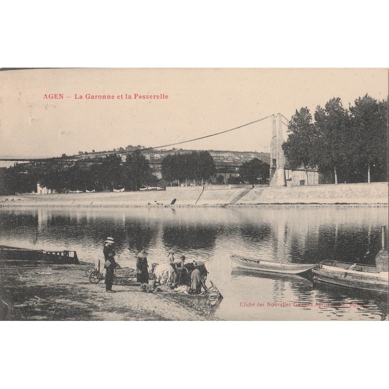 • AGEN - LA GARONNE ET LA PASSERELLE - LES LAVANDIERES - CARTE DATEE DE 1908.