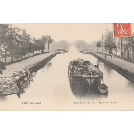 AGEN - PONT CANAL - LES LAVANDIERES - PENICHE LE ST ANNE - CARTE DATEE DE 1908.