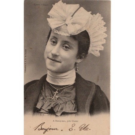 BEAUPREAU - PRES CHOLET - JEUNE FILLE AVEC LA COIFFE D'ANJOU - CARTE DATEE DE 1903.