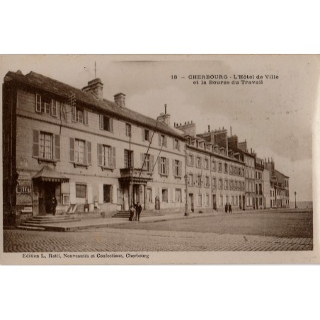 CHERBOURG  - L'HOTEL DE VILLE ET LA BOURSE DU TRAVAIL - CARTE AVEC TEXTE.
