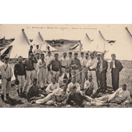 BIVILLE - CAMP DES SOLDATS - REPOS ET DISTRACTIONS - ANIMATION - CARTE AVEC TEXTE.