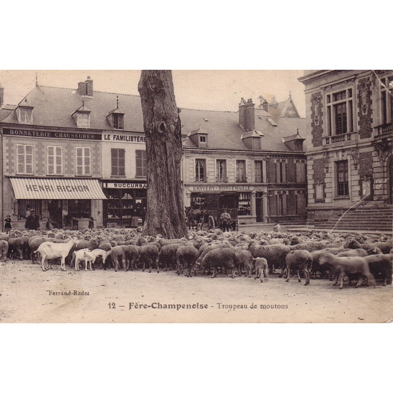 FERE CHAMPENOISE -  BERGER - TROUPEAU DE MOUTON EN VILLE - VERSO POINT DE COLLE ET PLI D'ANGLE -EN L' ETAT.