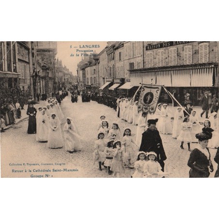 • LANGRES - PROCESSION DE LA FETE DIEU - ANIMATION - ENFANT - RETOUR A LA CATHEDRALE ST MAMMES -  CARTE DE 1910.