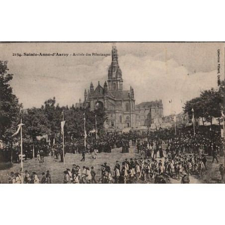 SAINT ANNE D'AURAY - ARRIVEE DES PELERINAGES  - ANIMATION - CARTE DATEE DE 1917.