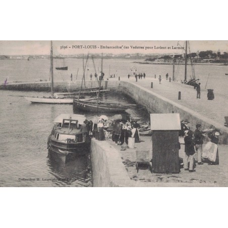 • PORT LOUIS - EMBARCADERE DES VEDETTES POUR LORIENT ET LARMOR - CARTE DATEE DE 1916.