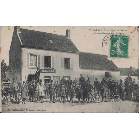 VILLARNAULT - UN JOUR DE BATTUE - LE RASSEMBLEMENT DES CHASSEURS - SUPERBE ANIMATION - RARE - LE TIMBRE NE SEMBLE PAS D'ORIGINE QUELQUES TACHES - EN L'ETAT.