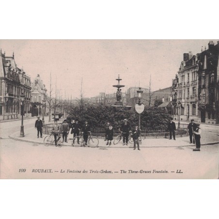 ROUBAIX - LA FONTAINE DES TROIS-GRACES - ANIMATION - VELO - CARTE AVEC TEXTE.
