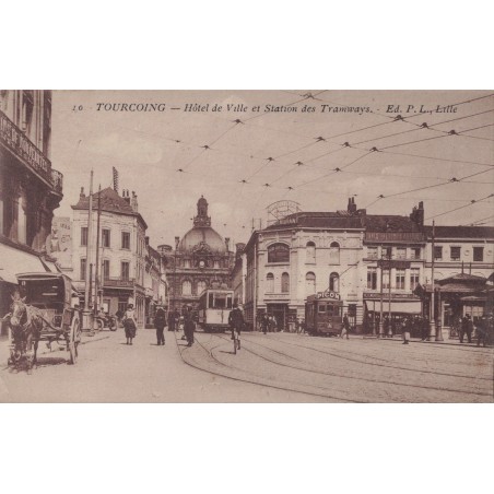 • TOURCOING - HOTEL DE VILLE ET STATION DES TRAMWAYS - CARTE DATEE DE 1922.