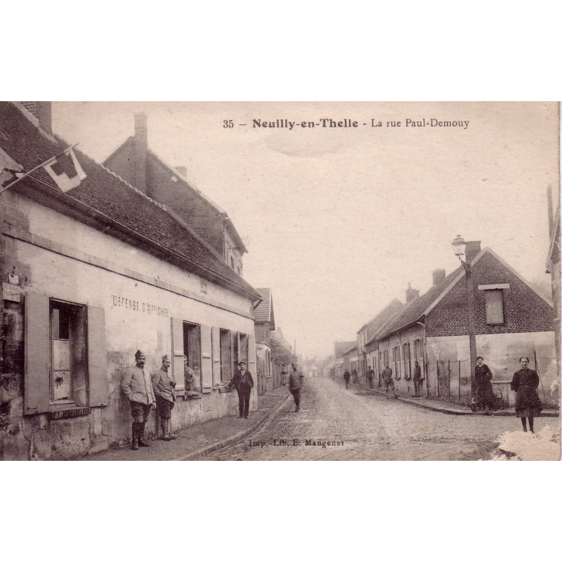 NEUILLY EN THELLE - LA RUE PAUL DEMOUY - MILITAIRES DEVANT UN HOPITAL DRAPEAU CROIX ROUGE - CARTE AVEC TEXTE.
