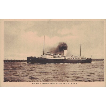 CALAIS - LE NOUVEAU PAQUEBOT COTE D'AZUR RENTRANT DE LA S.A.G.A. - VERSO CACHET DU BATEAU - CARTE NEUVE.
