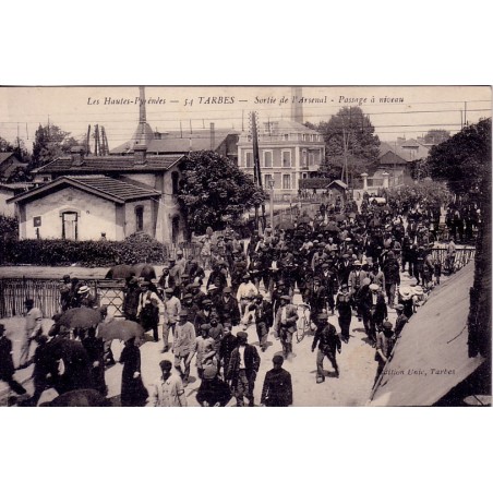 • HAUTES PYRENEES - TARBES - SORTIE DE L'ARSENAL - PASSAGE A NIVEAU - USINE DE FABRICATION DE MUNITIONS ET D'ARMES.
