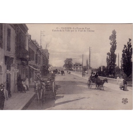 HAUTES PYRENEES - TARBES - LE POU DE PONT - ENTREE DE LA VILLE PAR LE PONT DE L'ADOUR - ATTELAGES - ANIMATION - CARTE DATEE DE 1916.