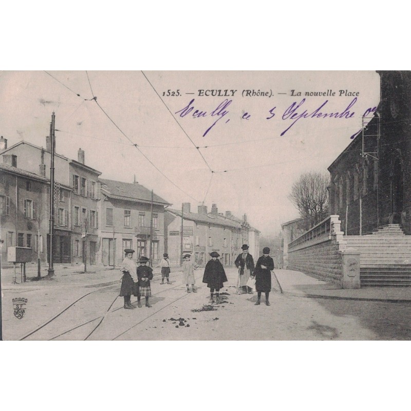 ECULLY - LA NOUVELLE PLACE - ANIMATION - CARTE DATEE DE 1907.