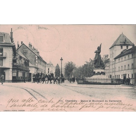 CHAMBERY - STATUE ET BOULEVARD DU CENTENAIRE - MILITAIRE A CHEVAL - CARTE DATEE DE 1902.