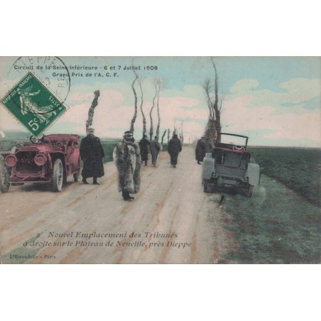 DIEPPE - CIRCUIT DE LA SEINE INFERIEURE - 6 ET 7 JUILLET 1908 - GRAND PRIX DE L'A.C.F. - VOITURES - ANIMATION - CARTE DE 1908.