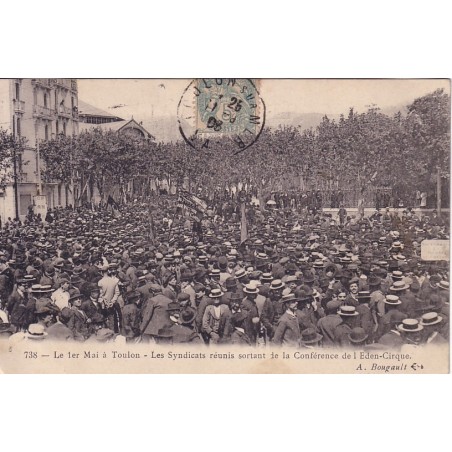 • TOULON - 1er MAI - LES SYNDICATS REUNIS SORTANT DE LA CONFERENCE DE L'EDEN-CIRQUE.