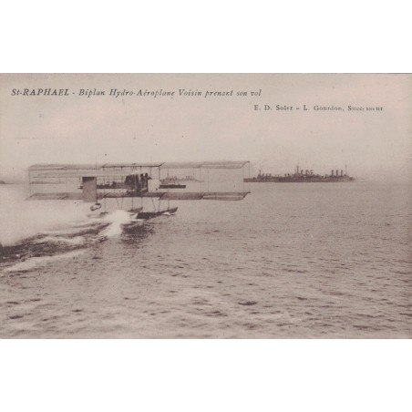 • SAINT RAPHAEL - BIPLAN HYDRO-AEROPLANE VOISIN PRENANT SON VOL - CARTE DATEE DE 1913.