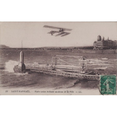 • SAINT RAPHAEL - HYDRO-AVION EVOLUANT AU DESSUS DE LA VILLE - CARTE DATEE DE 1914.
