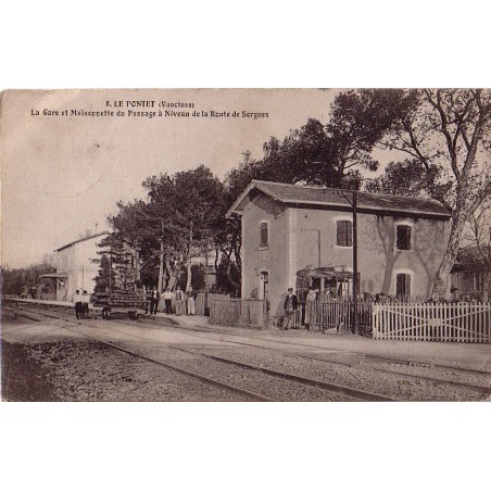 • LE PONTET - LA GARE ET LA MAISONNETTE DU PASSAGE A NIVEAU DE LA ROUTE DE SORGUES.