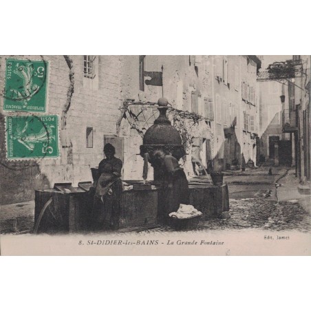 SAINT DIDIER LES BAINS - LA GRANDE FONTAINE - ANIMATION - LA LESSIVE - CARTE DATEE DE 1914.