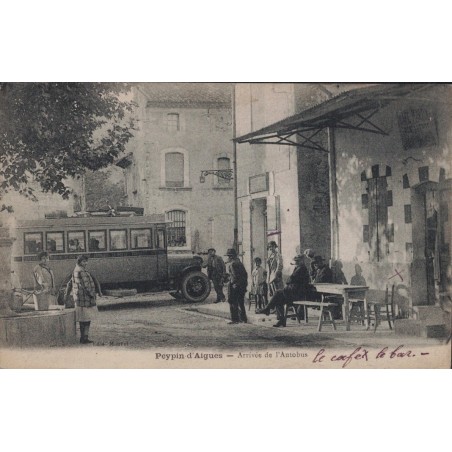 • PEYPIN D'AIGUES - ARRIVEE DE L'AUTOBUS - LE CAFE - LE BAR - RARE CARTE - ANIMATION - CARTE AVEC TEXTE.