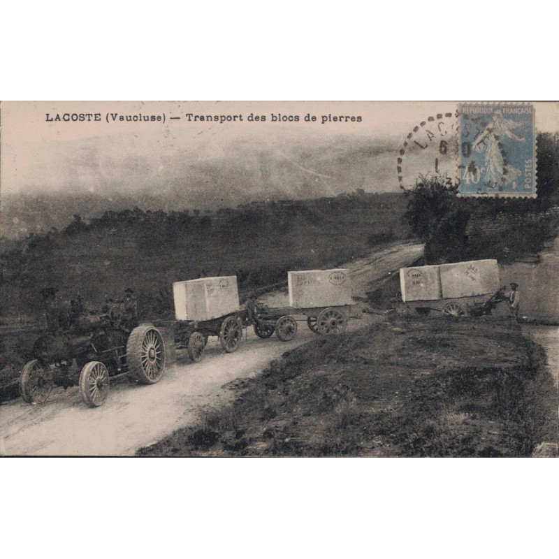 • LACOSTE - TRANSPORT DES BLOCS DE PIERRES - RARE - CARTE DATEE DE 1932.