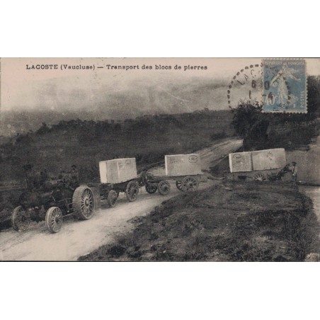 LACOSTE - TRANSPORT DES BLOCS DE PIERRES - RARE - CARTE DATEE DE 1932.