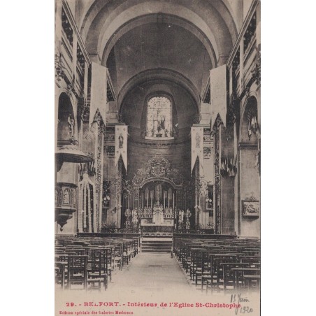 BELFORT - INTERIEUR DE L'EGLISE ST CHRISTOPHE - CARTE AVEC LONG TEXTE.