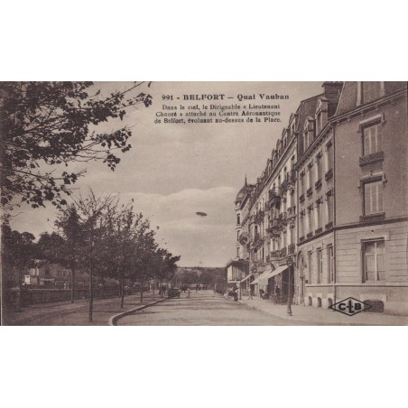 BELFORT - QUAI VAUBAN - DANS LE CIEL LE DIRIGEABLE "LIEUTENANT CHAURE" - CARTE DATEE DE 1920.
