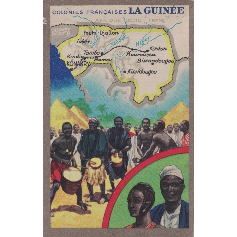 GUINEE - COLONIES FRANCAISES - CARTE GEOGRAPHIQUE - LION NOIR.