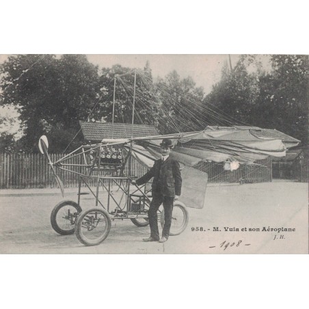 • MONSIEUR VUIA ET SON AEROPLANE EN 1908.