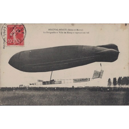 • MEAUX - BEAUVAL - LE DIRIGEABLE VILLE DE NANCY - VERSO CACHET CALLET RESTAURANT DE BEAUVAL - CARTE DATEE DE 1909.