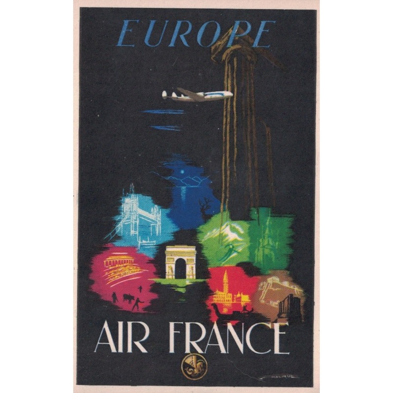 AIR FRANCE - CARTE POSTALE OFFICIELLE PUB EUROPE - INDISPENSABLE POUR ILLUSTRER UNE COLLECTION AERIENNE .