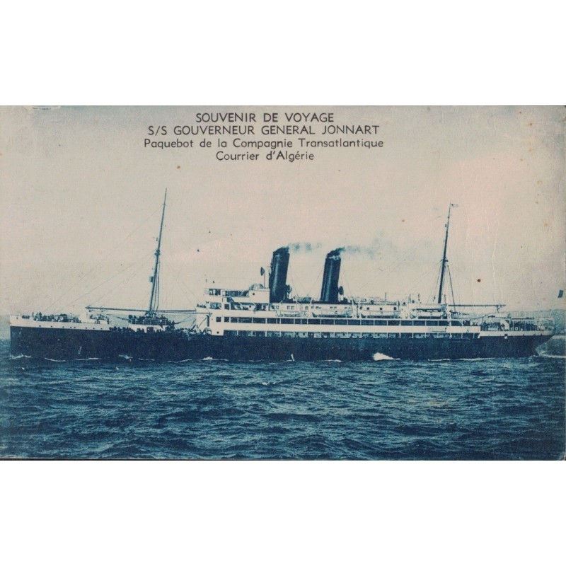 PAQUEBOT - GOUVERNEUR GENERAL JONNART - COMPAGNIE TRANSATLANTIQUE - COURRIER DE L'ALGERIE - CARTE DATEE DE 1938.