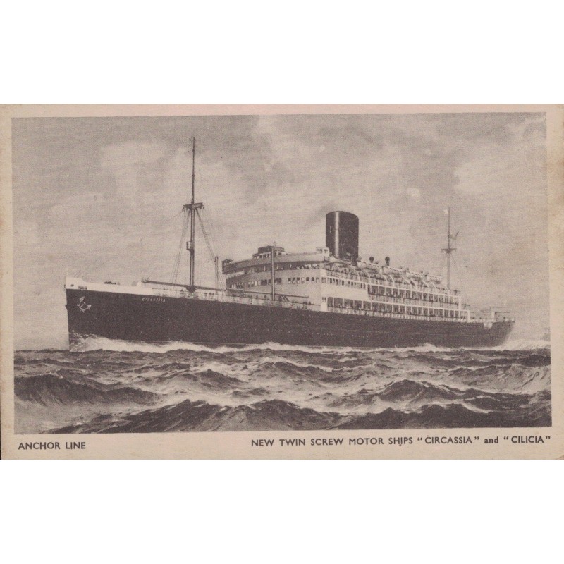 ANCHOR LINE - COMPAGNIE ECOSSAISE - PAQUEBOT LE CIRCASSIA - PLIURE D'ANGLE - CARTE NEUVE.