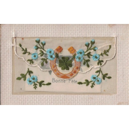 CARTE BRODEE - BONNE FETE - BRODERIE EN FORME D'ENVELOPPE - CARTE NON UTILISEE.
