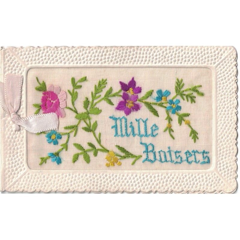 CARTE BRODEE - MILLE BAISERS - AVEC TEXTE.