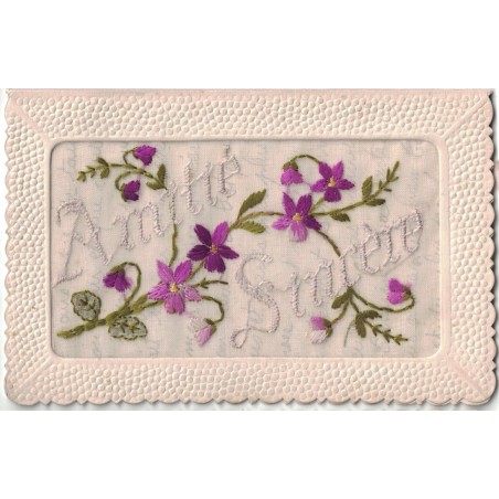 CARTE BRODEE - AMITIE SINCERE - AVEC TEXTE DE 1934.