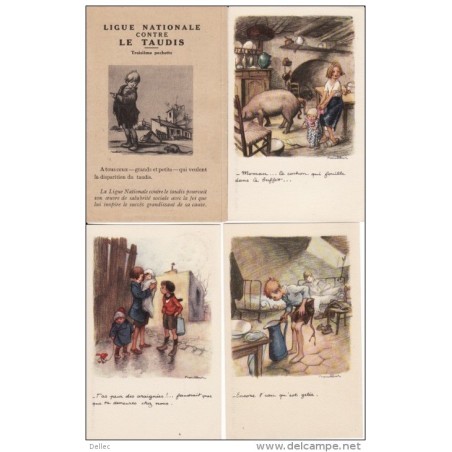 • POULBOT - ILLUSTRATEUR - LIGUE NATIONALE CONTRE LE TAUDIS - 5 CARTES POSTALES NEUVES AVEC LA POCHETTE - PEU COURANT.