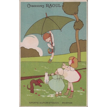 • CHAUSSURES RAOUL - SPORT HUMORISTIQUE - AVIATION - AVEC LONG TEXTE DATEE DE 1915.