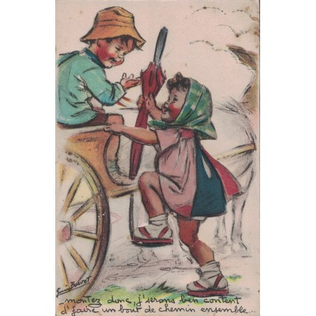 • GERMAINE BOURET - ILLUSTRATEUR - "Montez donc ............ " - CARTE A SYSTEME AVEC TEXTE