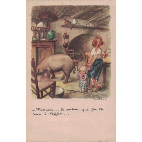 • POULBOT - ILLUSTRATEUR - "Maman, le cochon qui fouille dans le buffet" - CARTE NON CIRCULEE.