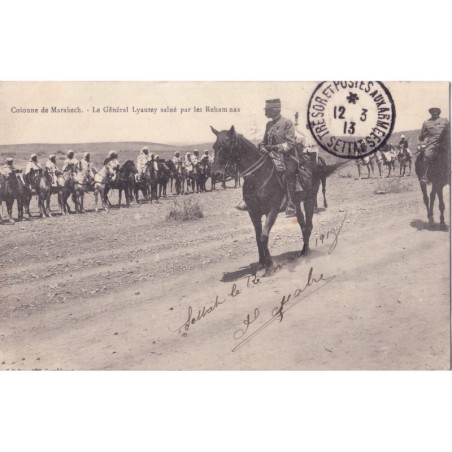 MAROC-TRESOR ET POSTES AUX ARMEES SETTAT LE 12--3-1913 - Carte postale de la colonne de Marakech - Le Général Lyautier salué par les Rehan nas.