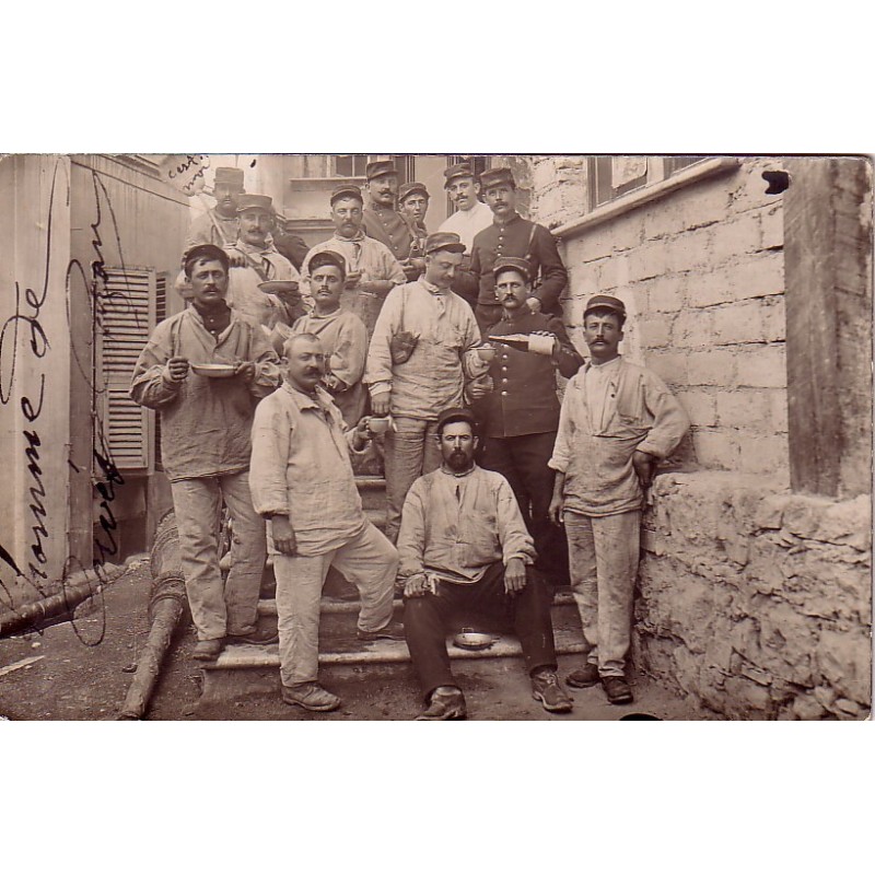 • GROUPE DE MILITAIRE - CARTE PHOTO - MANUSCRIT "L'HOMME DE CORVES".